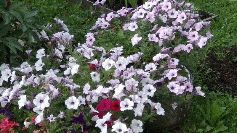 Петуния крупноцветковая (Petunia grandiflora F1) Espresso® Frappe Ruby понравилась, хоть и крупноцветковая неплохо держит дождь, но надо формировать,я не стригла ее и она подвытянулась