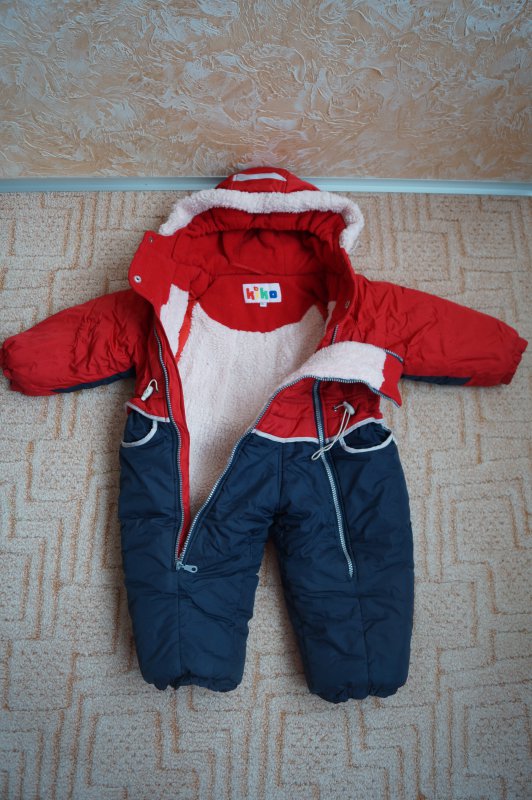 1. Комбинезон зимний, KIKO, размер 86. Можно и на больший рост. Очень-очень теплый комбез! Сломана одна собачка у молнии, я растегивала только с одной стороны. Удобный капюшон, не задувает. 800руб