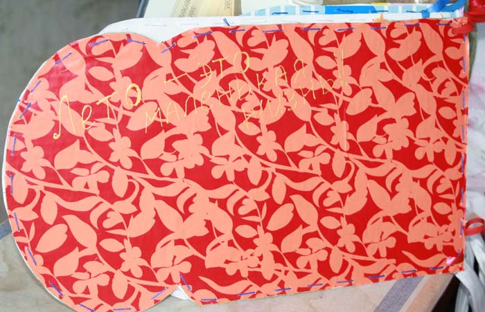 Материалы: бумага для черчения, упаковочная бумага, цветной картон, гофрированная бумага, ткань, цветы из ткани, бусины, паетки, пуговицы, тесьма, нитки, чернила.