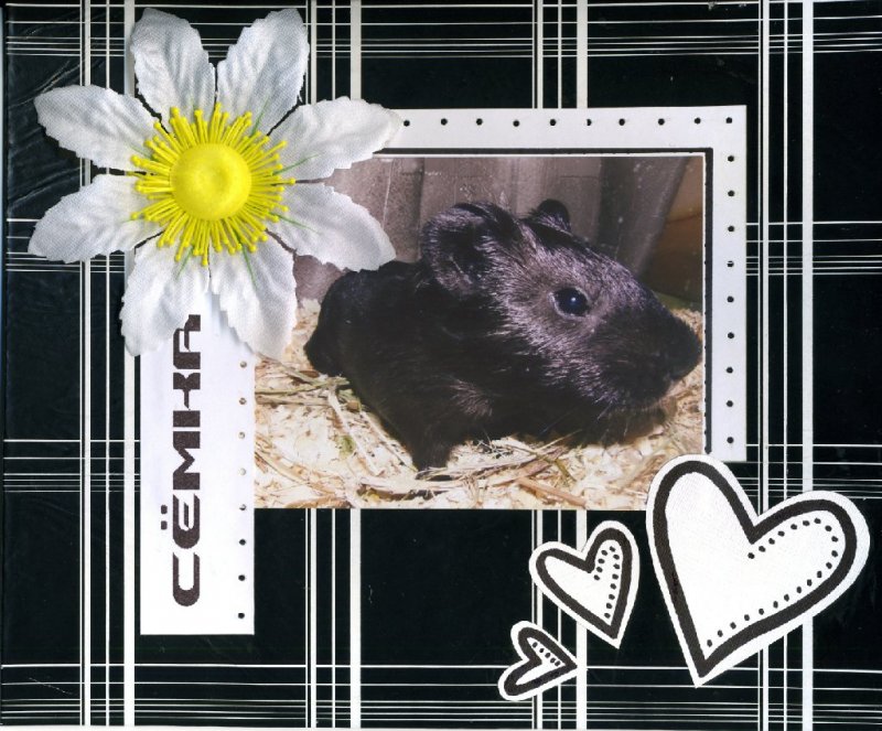 Это мой любимый Семка (морская свинка). Использована оберточная бумага и искуственный цветок. Скромненько так....