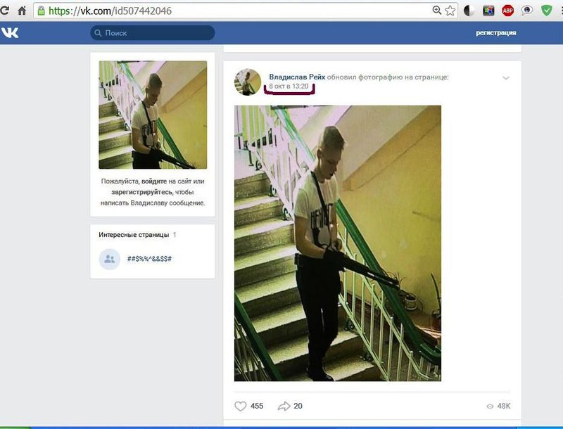 Страница фейковая, потому что об этом уже сообщал сам Владислав Рейх, который никакого отношения к убийце не имеет