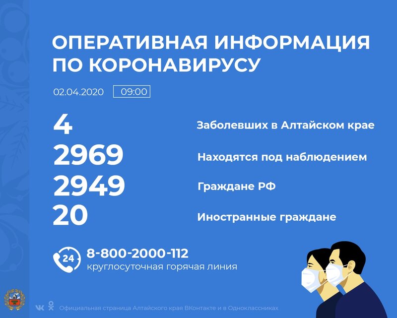 Оперативный штаб Алтайского края по реализации мер профилактики и контроля возникновения COVID-19 сообщил о трех новых случаях заболевания коронавирусной инфекцией в нашем регионе. Какой-то связи с первыми заболевшими у данных граждан пока не прослеживается. Положительные результаты анализов подтверждены государственным научным центром вирусологии и биотехнологии «Вектор».