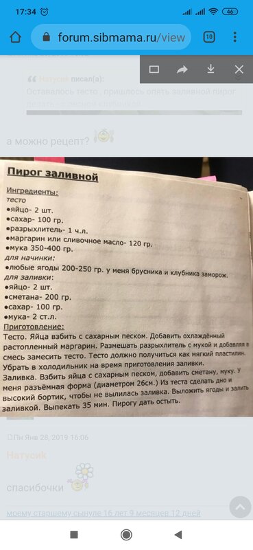 Пирог заливной по рецепту Натусиk