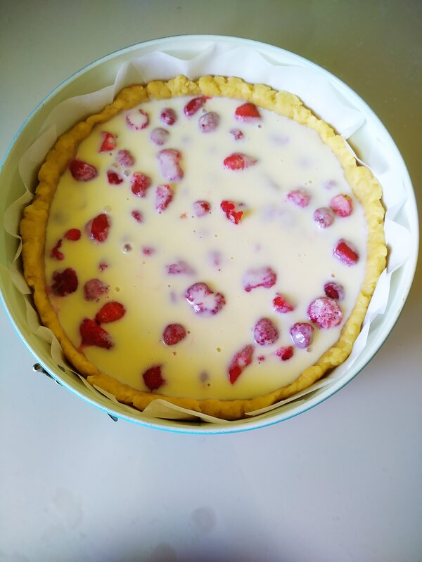в сметанный крем клубнику тоже добавили :-)