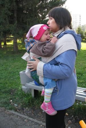 Ее дочь пугает и так перепуганных прохожих, только подтверждая мысль, что слинг - это ужасно :lol: Мой сын напугал прохожих чуть позже :oops: