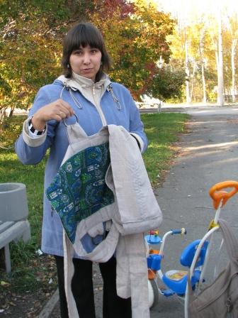 Галя показывает слинг собственного производства