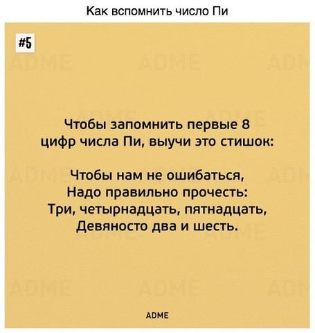 Стишок для запоминания цифр: