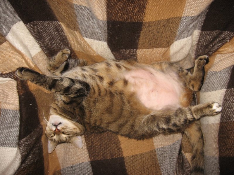 и я расскажу про своего Тиграшеньку. Я решила найти по объявлению котенка (хотела британца, думаю гляну "брак" что бы не дорого или бесплатно) и наткнулась на объявление "отдам большого кота похожего на тигра" Как оказалось его хозяйка трагически погибла и кот жил в квартире один 3 недели!!!! :eek: его только кормить приходили. Худой, какой то весь противный, я когда пришла встретила меня такая длинная худая "сосиска" :lol: и хвост как шнурок! (так сейчас и остался) он сразу подошел ко мне и стал КУСАТЬСЯ! :lol: в общем кусается до сих пор! своенравный у меня котик. и фото