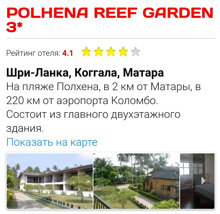 А мы уже дважды в феврале побывали на шри- Ланке.. Отель выбирали в хиккадуве - хикка транс.. Пляж с черепахами, второй пляж со спокойным заходом и без волн.. Просто релакс.. Про отель почитайте на топхотелс- всё правда.. У отеля приличный риф, много рыбок( не Египет конечно..), Еда:брали завтрак, ужин- очень всё прилично., чисто, вкусно.. На обед ходили в кафе, рыбный рынок, фруктовый-, всё в пешей доступности. Экскурсии есть, но историческое всё в центре острова( долгий трансфер) Форт Галле- ездели сами- понравился, с местными сгоняли в голубую лагуну. Шри- ланка нам понравилась, океан- восторг, но купабельный пляж нужно выбирать. Фруктов, морепродуктов много и разнообразно. Сравнивать с таем- нет смысла( многим не хватало макашниц, здесь их нет)