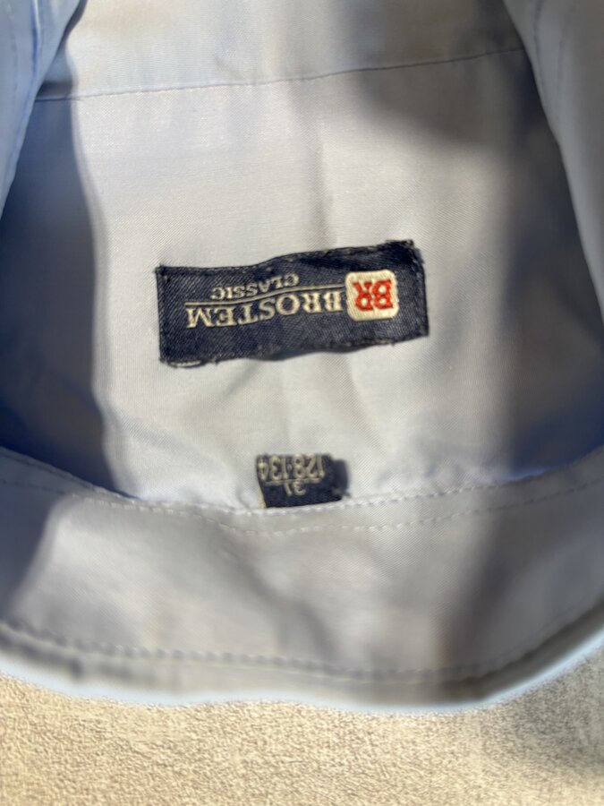 Рубашка новая белая Tsarevich царевич 146-152. Развернули. Модель классика, не слим. Подойдет на не худую комплекцию. 850р.