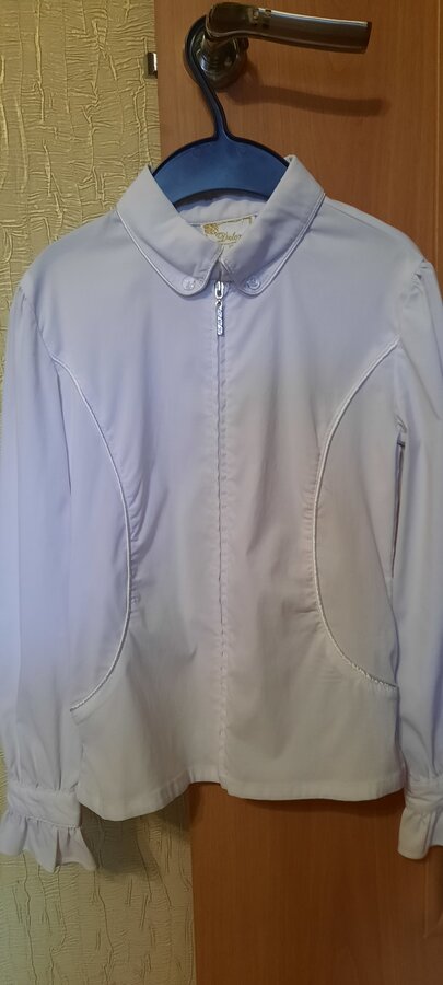 Блузки 146 в отличном состоянии делорес блузки по 500, на молнии делорес 400, короткий рукав по 300, Кофточка белая длинный рукав по 300, белую с карманами (есть потёртости видно б/у) отдам при нескольких покупках
