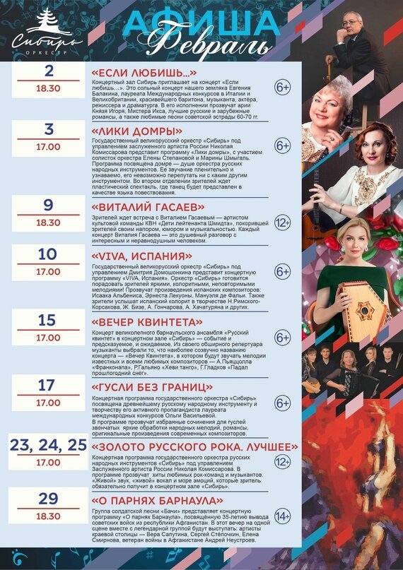 📍 Концертный зал «Сибирь», просп. Ленина, 7.