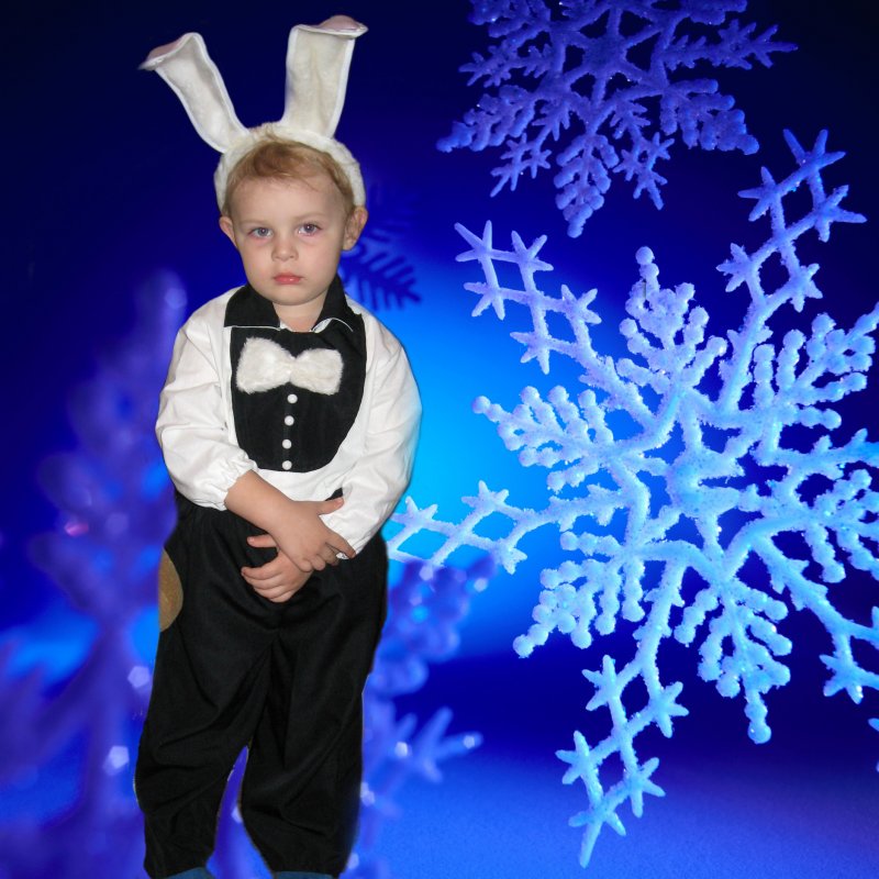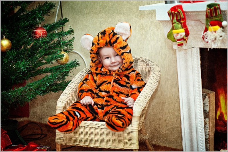 Для своего любимого внука наша бабушка сшила чудесный новогодний костюм Тигрёнка, и бархатное бордовое платье тоже собственного изготовления.