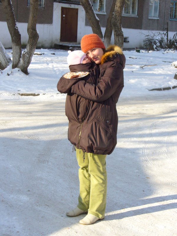 слинг покупать не будешь? я с дочей научилась слингом пользоваться, это мы: