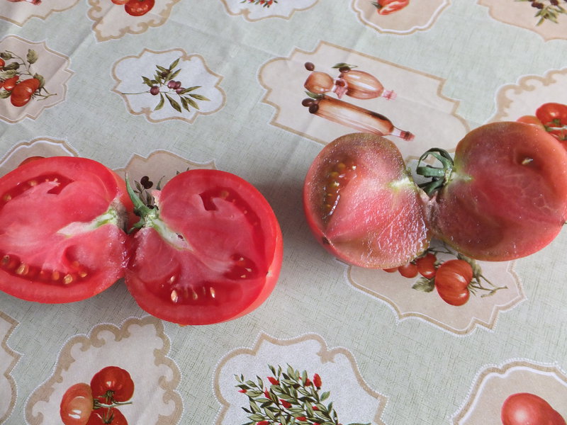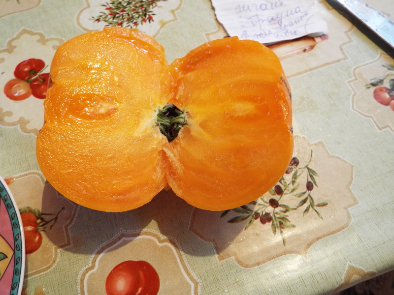4. Жёлтый гигант Брауна - на фото помидорка среднего размера, есть крупнее, но съели уже. Очень вкусная, сладкая, мясистая. На разломе сахаристая. Тоже не ранние.