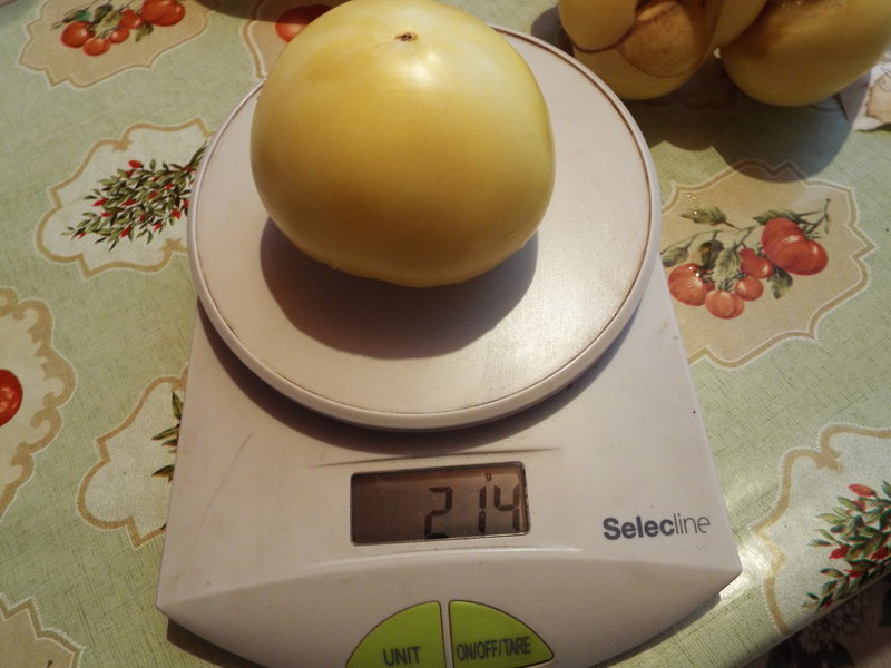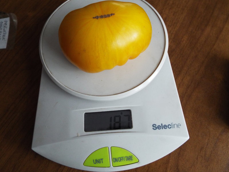 1. Желтое чудо Томаса - одна была 540 гр, но успела немного подгнить, а эта 200 гр. На вид красивая светло-желтая, сочная, но чуда не произошло, она кислая :haha: . Семена брать не стала.