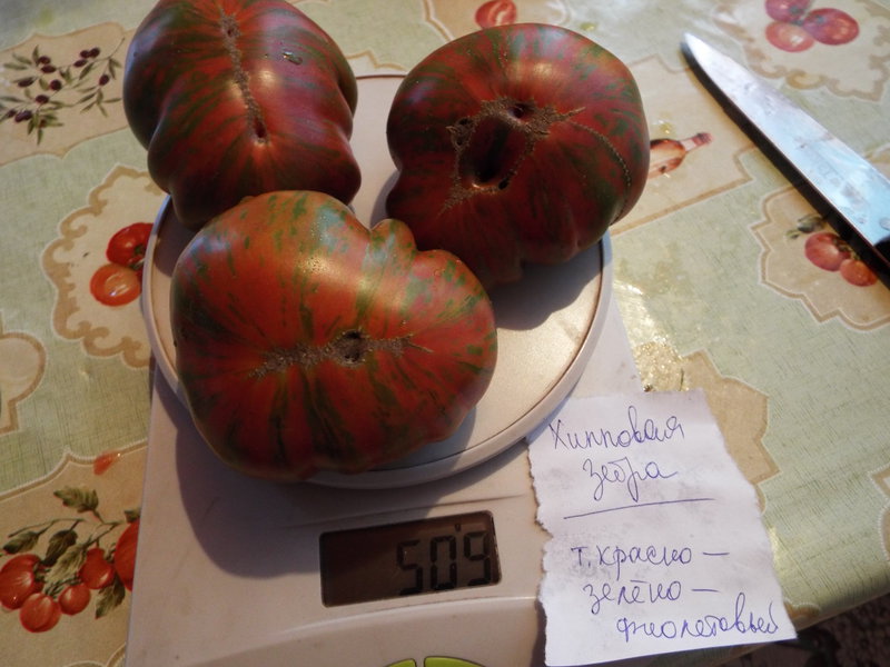 3. Хипповая зебра - ну зебра может и хиппует, но помидоры совершенно ужасного вкуса, кислятина полная. Не стала семена брать. Они конечно красивые, пестрые, куст увешан ими, все среднего размера. Посмотрю как в засолке себя поведут, ну а так совсем не вкусно.