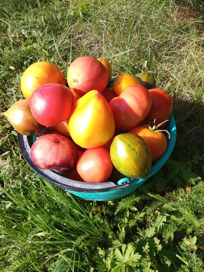 У меня в ОГ второй год отличные помидоры, по размеру и вкусу. Но теплица у меня с укрывным, без поликарбоната, воду пропускает, получается потом внутри как тропики, поэтому они там жируют, борюсь только с листьями и пасынками, вяжут плохо. Больше не буду в ней высаживать, только ОГ. Фитофтора в этом году была, но выбросила помидор немного, больше всего пострадали черри Сладкие сосульки. Огурцы ещё плодоносят, вчера собрала очень хороший урожай, хватит и поесть, и замариновать, белая анаконда вообще лучше всех себя показала, но всё равно такой урожай, думаю, последний, на следующей неделе планирую убрать. Кабачки тоже хорошо ещё плодоносят, хоть и не так много, пять лет сажаю сорт Кавили, всем устраивает.