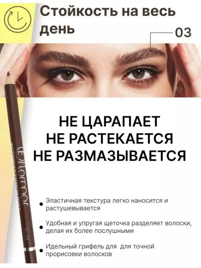 Растительные масла входящие в состав карандаша для бровей Flormar увлажняют кожу и защищают от признаков преждевременного старения.