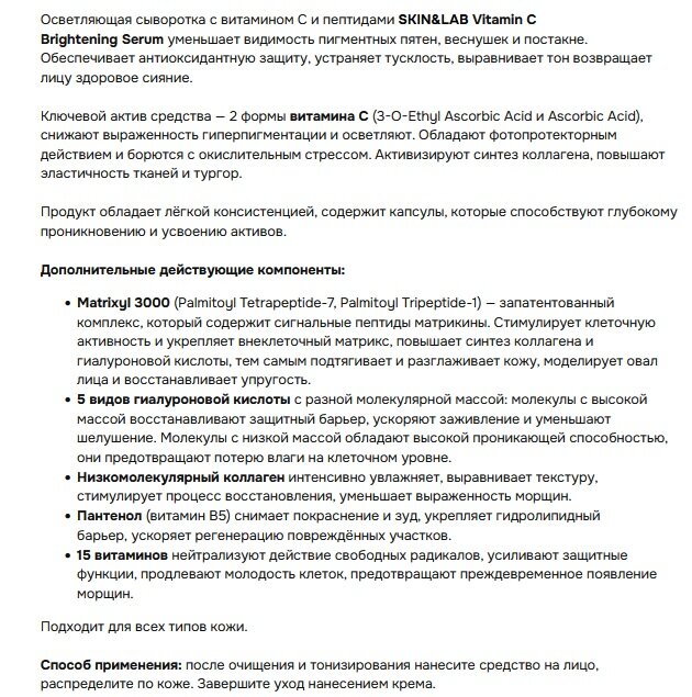 Skin&Lab Vitamin C Brightening Serum/Осветляющая сыворотка с витамином C и пептидами, 30млНОВИНКА, текстура слегка маслянистая усилена Matrixyl 3000, супер-хит бренда