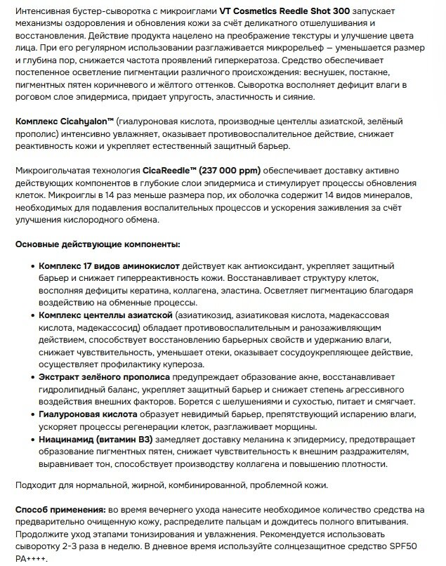 VT Cosmetics Cica Reedle Shot 300 Интенсивная бустер-сыворотка с микроиглами, САШЕ 2 мл НОВИНКА! Хватает на 3 раза