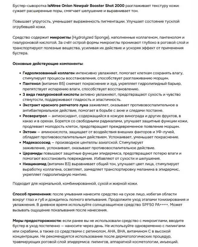 IsNtree Onion Newpair Booster Shot 2000 Многофункциональная Сыворотка с микроиглами и коллагеном, церамидами, гиалуронкой, САШЕ 2 мл НОВИНКА! Хватает на 3 раза