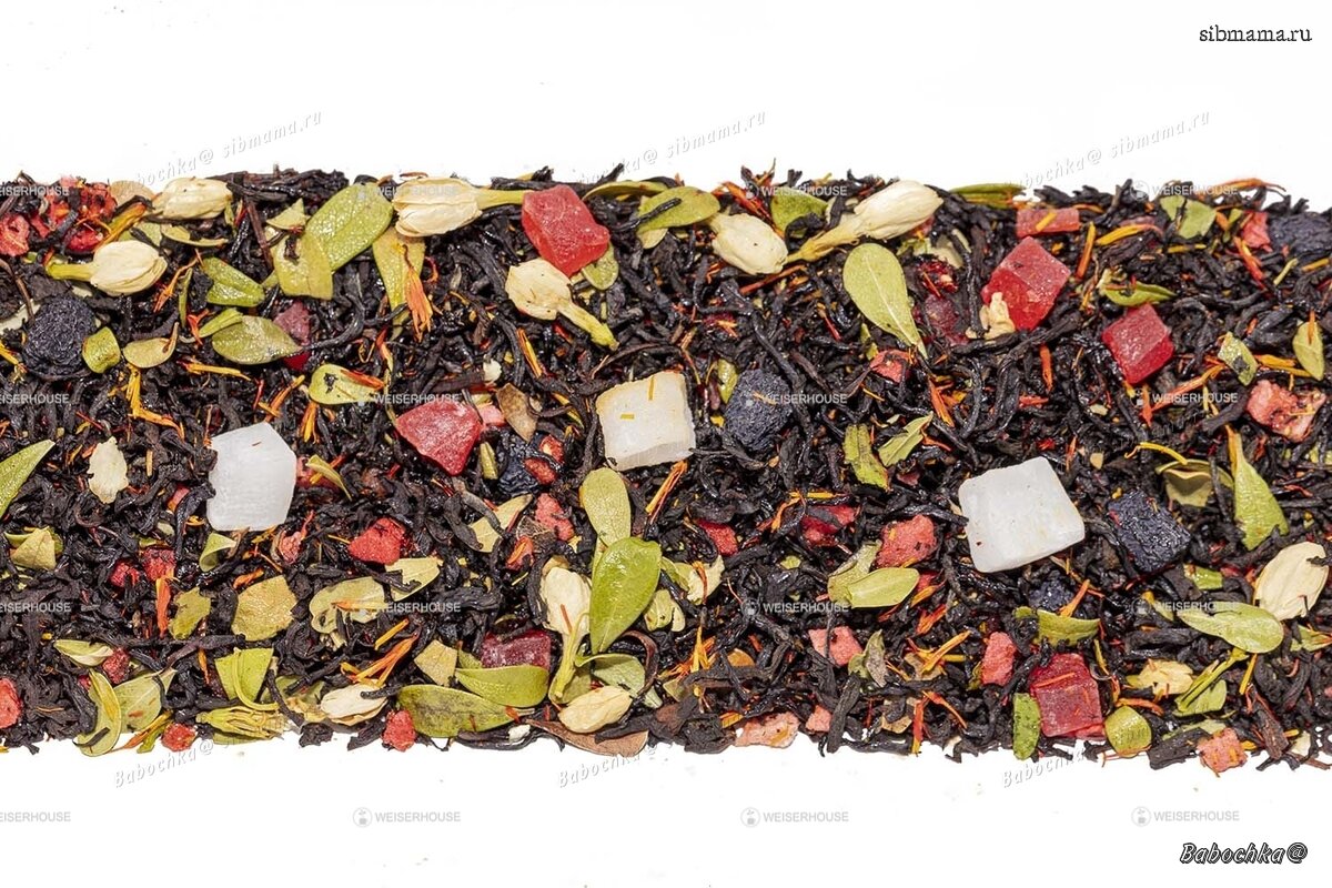 Черный индийский чай с ягодами ежевики и черноплодной рябины, кусочками клубники, папайи и кокоса, листьями брусники, цветками жасмина и лепестками сафлора. Настой красно-коричневого цвета, насыщенный и бархатистый, с ярким вкусом и ароматом. Поднимает настроение и дарит заряд бодрости. Прекрасный подарок для "самой-самой" женщины в мире.