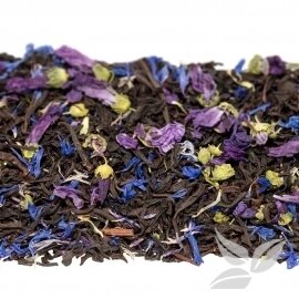 Черный индийский чай с ароматом бергамота, лепестками василька и цветов мальвы. При заваривании дает настой темно-коричневого цвета, наполненный цветочно-фруктовым ароматом.