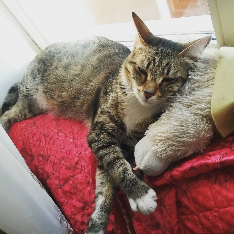 спать животному негде)уже в горшки с цветами пристроилась, а что?удобно)