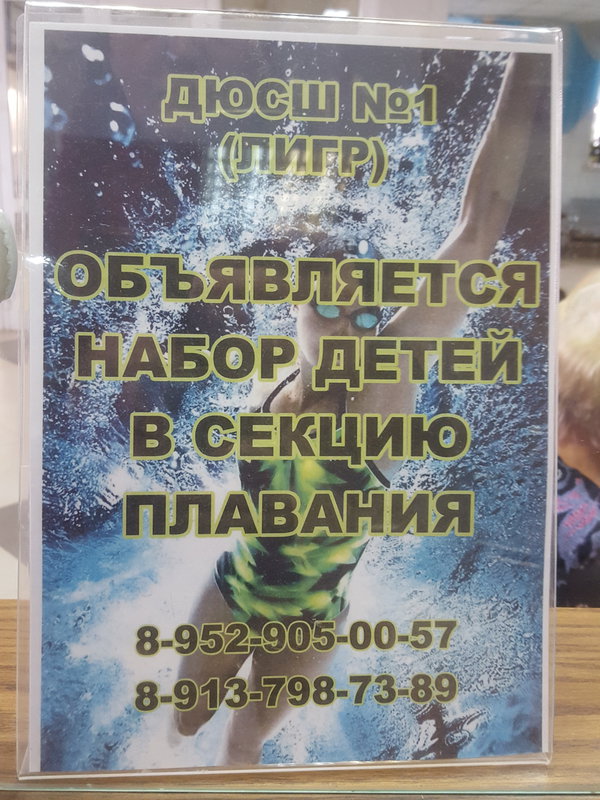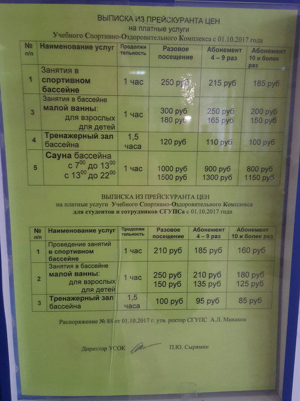 Еще был лист по синхронному плаванию, по дайвингу предложение и у кассы прайс для студентов и сотрудников. Их не стала фотографировать.