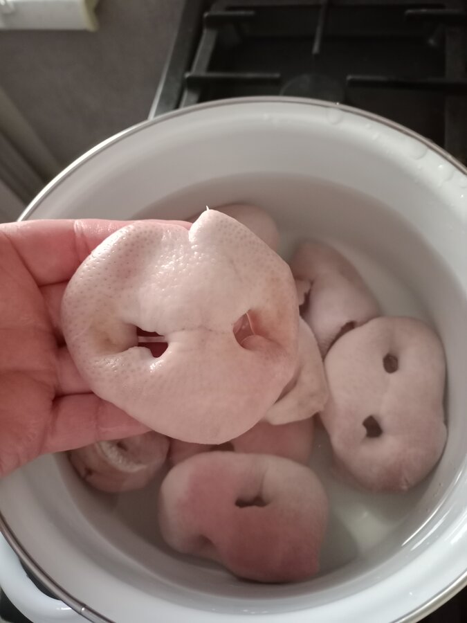 Сейчас во многих мясных лавках продают свиные носики, да да именно носики.
