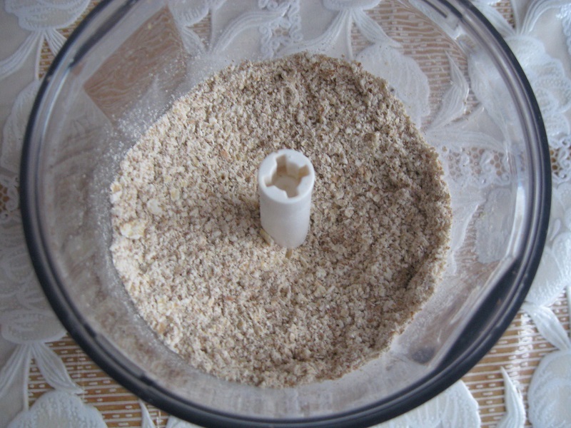 Я взяла овсяные хлопья Увелка и размолола их в блендере. В оригинале у девочек были какие-то проблемы с количеством муки. У меня ушел ровно стакан, больше ее там явно не надо было.