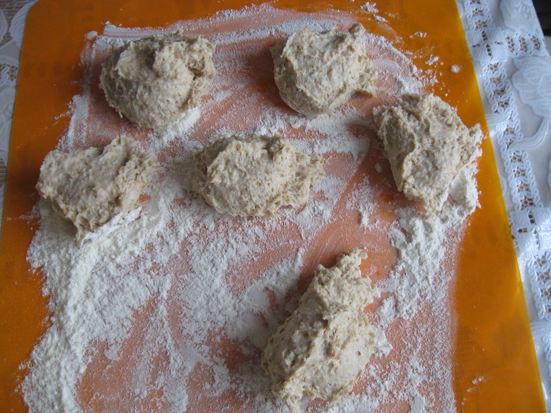 2) По рецепту надо сразу разделать на булочки, а потом дать им подойти. Я вначале дала тесту подойти 30 минут, затем еще раз перемешала и начала разделку булочек.