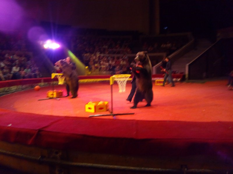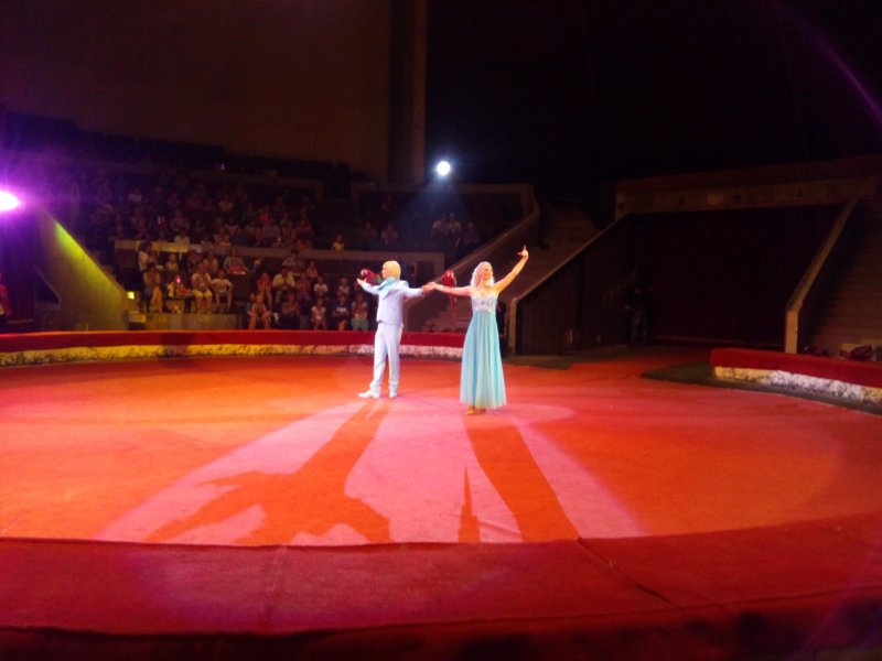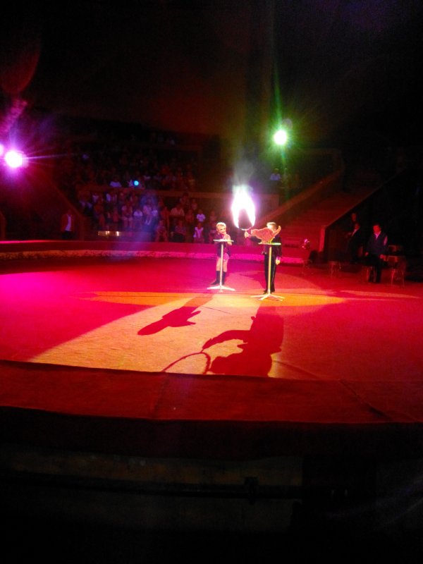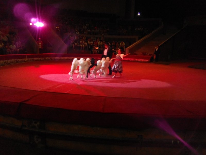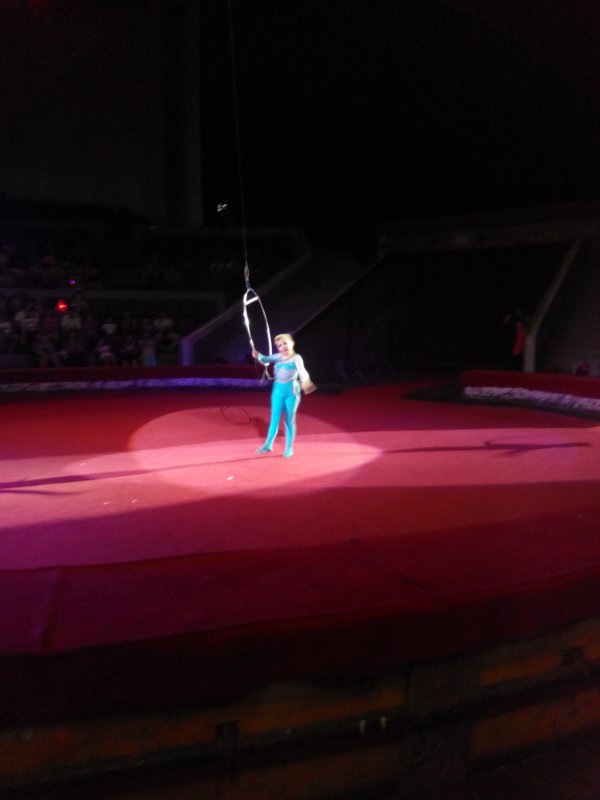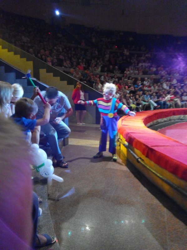 Сидели мы на 7 ряду в синем секторе над входом, отлично видно было, и сын даже не понял что эти люди были лилипуты. Все вялотекущее... Клоуны не смешные, хотя у меня сын над всякими примитивными шутками готов смеяться...гимнастка пенсионного возраста одна на обруче, очень медленно и печально покрутилась и слезла, из животных собачки и кошки были, тоже просто побегали, походили и все, были медведи, на велосипеде катались, в конце был номер с попугаями, муж с женой ( не лилипуты) в очень красивых нарядах и подставки для попугаев красивые очень были! И мужчина гимнаст на веревках ( тоже не лилипут) в конце тоже хорошо и динамично выступал, вот они единственное что мне понравилось в этой программе...