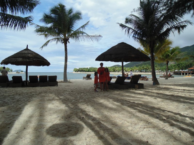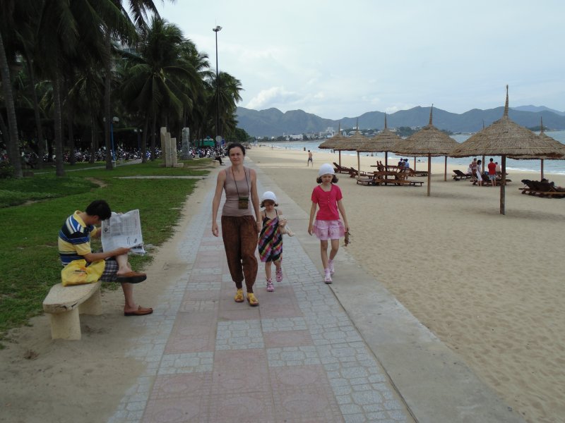 Ну и особенность загородного отеля - покушать и погулять вне отеля негде. Большинство туристов ездят в город на бесплатных автобусах (ходят по рпсписанию, от отеля подадут столько автобусов, сколько будет желающих уехать, до Ня Чанг Цента 30 мин.) или на такси (примерно 300 руб., ехать минут 15), мы ездили инесколько раз, но с детьми как-то получалось напряжно, поэтому сам НяЧанг мы изучили мало. Ужинали в основном в отелевских ресторанах (С-Хаус, Омай, Сифуд, бар у бассейна Сивуд, бар Банана при нас был на ремонте), дороговато по сравнению с городом конечно и выбор не большой, быстро приедается. Обедали чаще всего на дальнем пляжв - морепродукты вкусно и недорого. В городе отоваривались в основном в МАксиМарте,- цены очень демократичные, в НяЧанг Центре дороже.