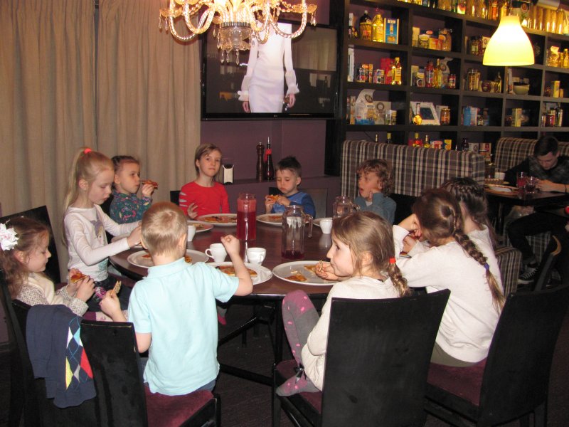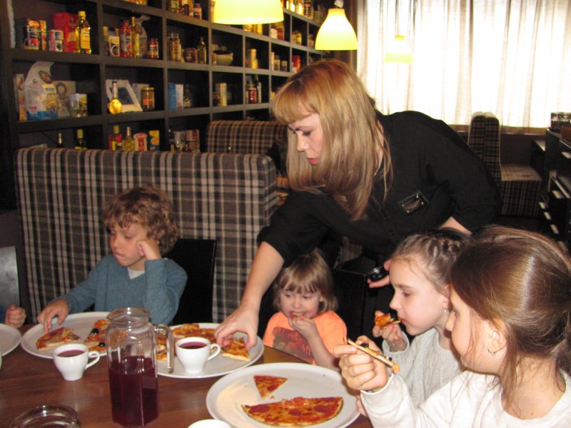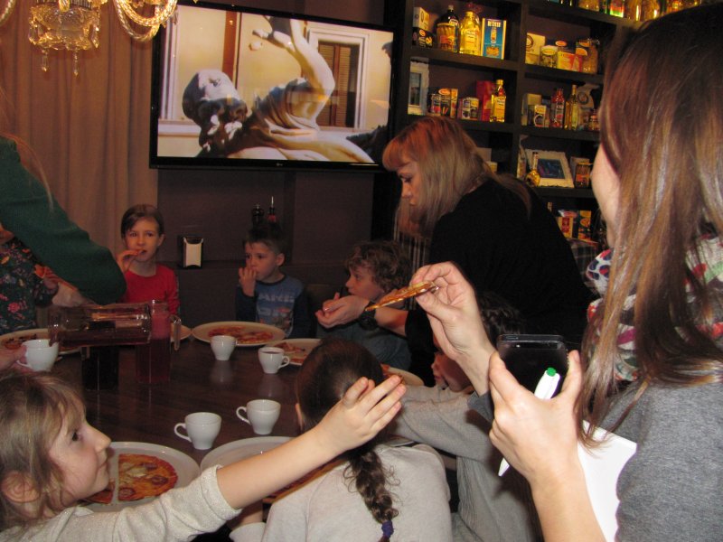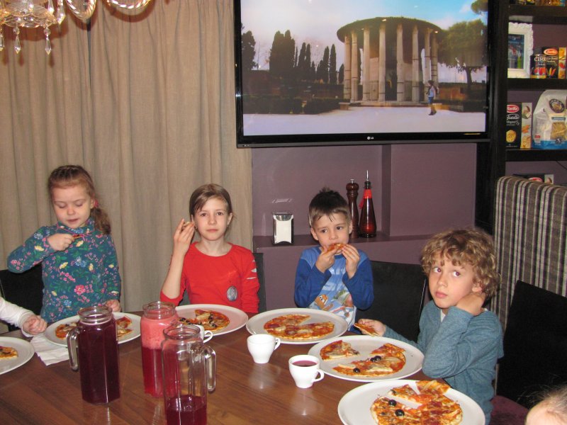 Пока пиццы готовились в печи, дети снова могли поиграть:
