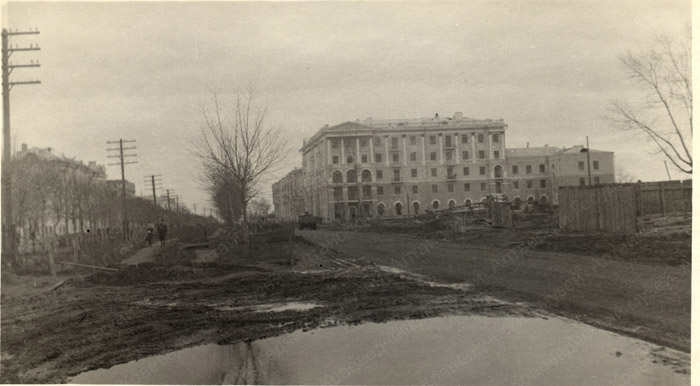 Здание построено в 1905г. После этого многократно перестраивалось. Наибольшей перестройке подверглось в 1912г. Оценить ее масштабы по сравнению с окружающими домами можно на архивной фотографии.