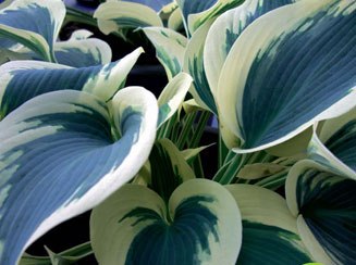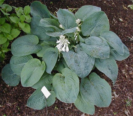 Синие (голубые, сизые, сине-серые, сине-зелёные). Внутри этой группы можно выделить сорта, у которых синяя окраска не выражена весной, наиболее интенсивно проявляется в середине сезона (Big Daddy, Canadian Blue, Bressingham Blue), или наоборот, сорта с изначально синими листьями, которые постепенно зеленеют (Blue Angel, Krossa Regal).