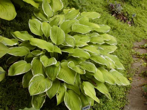 Как и все хосты Зибольда, крупная, с плотными фактурными листьями, новый сорт "Голден Медоуз" ("Золотые луга") радует модной окраской: крмовая середина с широкой перистой голубой каймой. Центр весной ярко-золотистый, в середине лета кремовый, затем зеленеет до цвета шартрез