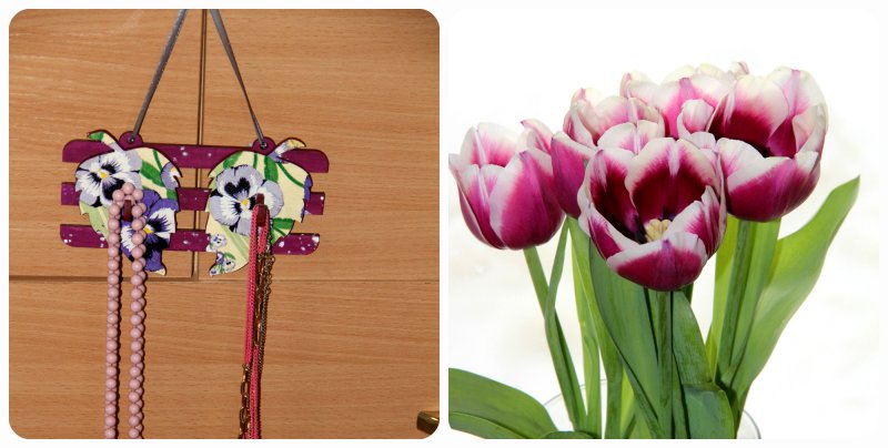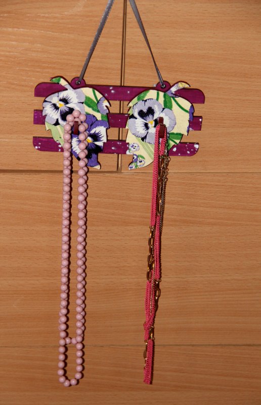 У меня из весеннего сейчас в работе вышитые миниатюры - руки не доходят оформить, но есть и готовая вещица - подарок подружке. Держатель для украшений - бус, цепочек и т.д.
