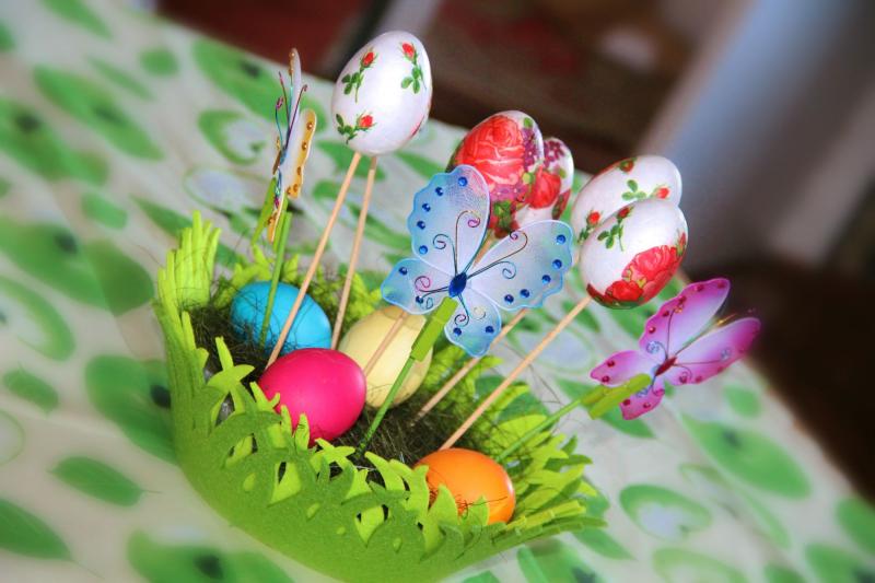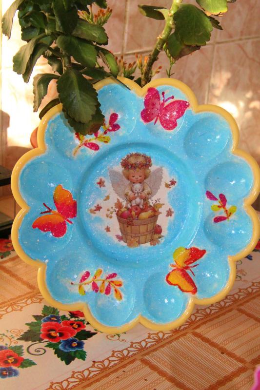 И яйца из пенопласта задекупажила, только их еще доработать надо