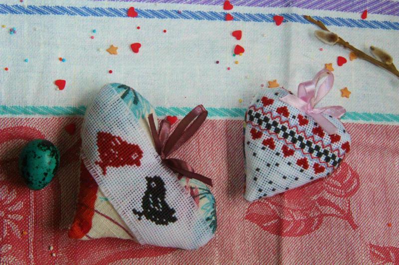 В прошлом году сшила два сердечка для пасхального дерева: