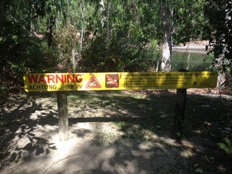 вот эту табличку " осторожно,крокодилы", в Кернсе встречаешь очень часто.Не очень поняла, но она стояла возле озера, кругом гуляли люди.