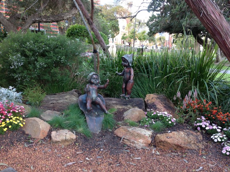 Левостороннее движение не только на дорогах, на тротуарах тоже. Тяжеловато помнить об этом, когда идешь и озираешься, открыв рот :) Мужчина в центре не местный, тоже на конгресс прибыл. Хотя я так и не поняла австралийский прикол: рядом могут находиться две девушки, одна в шлепанцах, другая в угги.