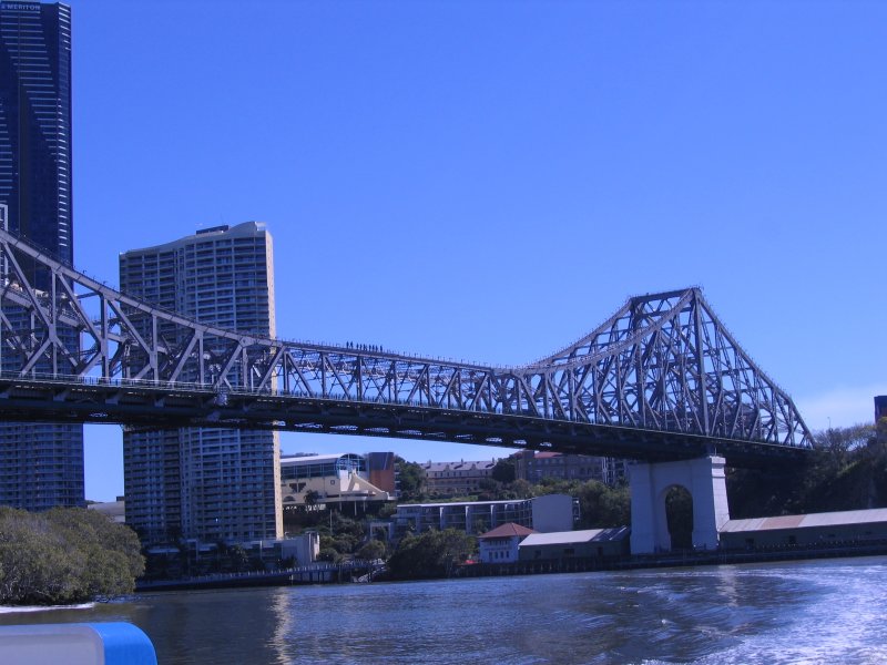 А это Story Bridge - сверху люди. Такая экскурсия-экстрим, я когда собиралась ехать раздумывала, может купить, но высоту побаиваюсь. Вообще Брисбен на реке стоит, но мостов столько, что Новосибирск обзавидуется.