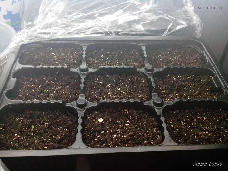 Приготовила кассету, подписала перманентным маркером все ячейки, насыпала грунт (покупной + вермикулит), немного уплотнила, полила (без фанатизма) и сделала углубления зубочисткой.