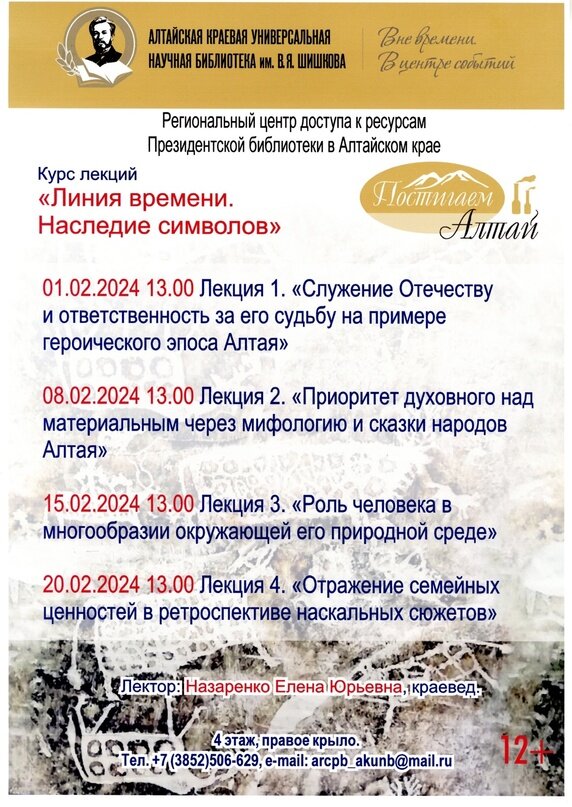 14.00 «Ело. В самом сердце Алтая»: презентация книги из фонда Национальной библиотеки Республики Алтай им. М. В. Чевалкова (г. Горно-Алтайск).