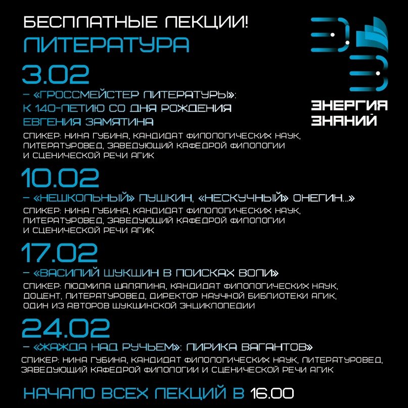 Не лишайте себя удовольствия побыть в приятной атмосфере Шишковки и расширить кругозор, поговорить о любимом и прекрасном. До встречи 10 февраля в 16.00 на 1 этаже библиотеки.