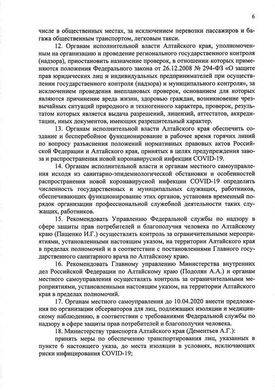 Губернатор Виктор Томенко утвердил изменения в указ о мерах по предупреждению завоза и распространения в Алтайском крае коронавирусной инфекции