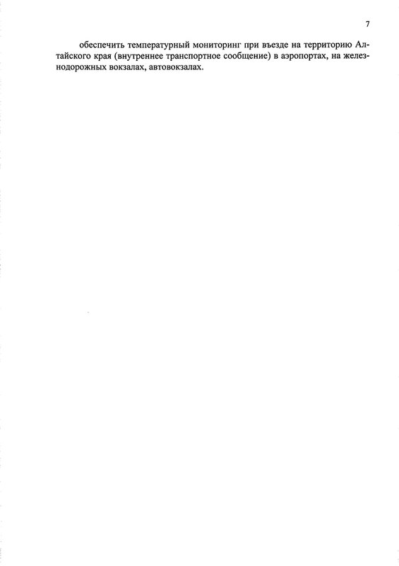 Минтрансу края поручено обеспечить температурный мониторинг при въезде на территорию Алтайского края (при внутреннем транспортном сообщении) в аэропортах, на железнодорожных и автовокзалах